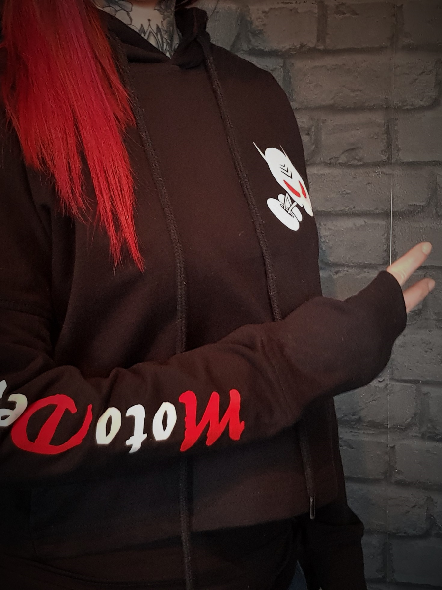Legerer Schnitt | Kurz geschnitten | French Terry aus Biobaumwolle und rPET (= recyceltes PET (z.B. recycelte Plastikflaschen, etc.)) | Tief angesetzte Ärmel | Extralange Bündchen mit Daumenloch | Extralange Kordeln | 3-teilige, einlagige Kapuze | Abreißbares Etikett | OCS zertifiziert